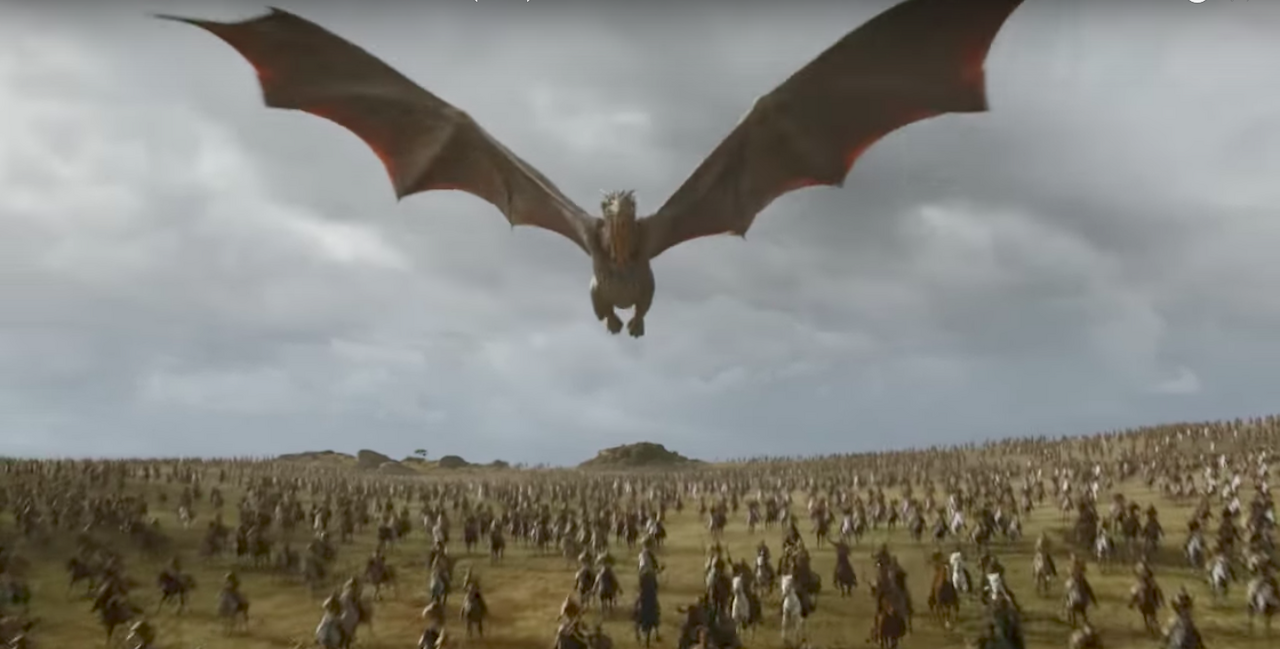 《冰與火之歌:權力遊戲》(Game of Thrones)第七季第四集「The Spoils of War」中,「龍母」丹妮莉絲坦格利安(艾蜜莉亞克拉克 飾)乘著巨龍挺進戰場(the Loot Train Battle),將劇集帶入前所未有的高潮。巨龍大規模的噴火場面驚心動魄令觀眾震懾不已,成為繼「私生子大戰」後《冰與火之歌:權力遊戲》最經典的戰役之一。