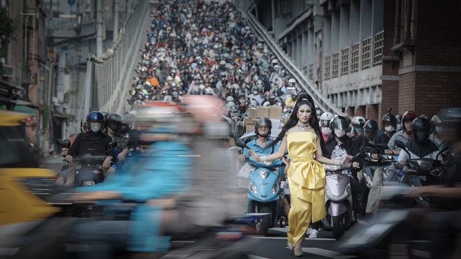 潘信安經由多次的跟拍發現,曹里歐除了變裝演出賺取小費維生,更有許多藝術展覽表演的邀約,他親手縫製獨一無二的服飾、用心設計的妝容創作更融入各國的文化特色,非常有自己的想法。