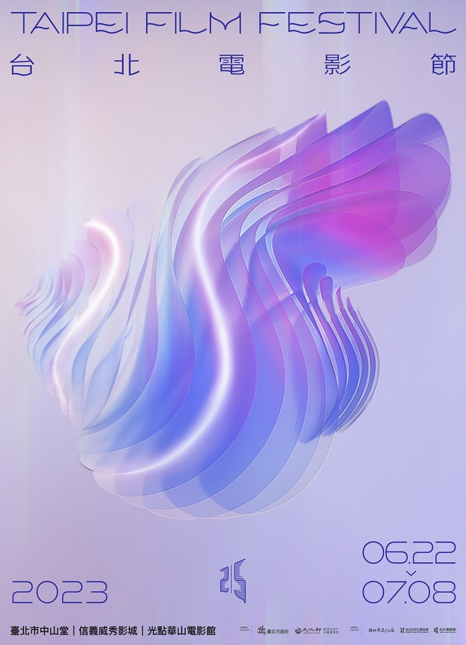 2023 年第 25 屆台北電影節今(27)日發布主視覺,由曾獲德國紅點傳達設計獎、金點設計獎的白輻射影像團隊操刀,以「破蛹展翅」為主要設計概念,透過柔和曖昧的藍紫色與半透明的氛圍,呼應著電影創作過程充滿未知、隱約與不確定性的美學,結構上相互交疊的羽翼舒展意象,隱約浮現數字 25,象徵台北電影節 25 年來,持續伴隨台灣電影人成長與蛻變。