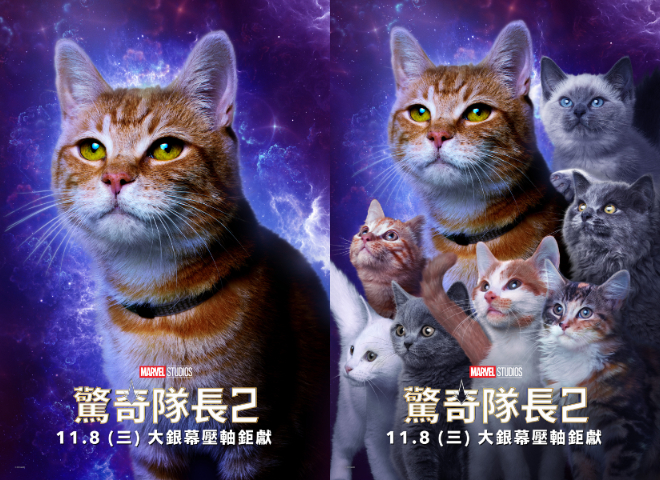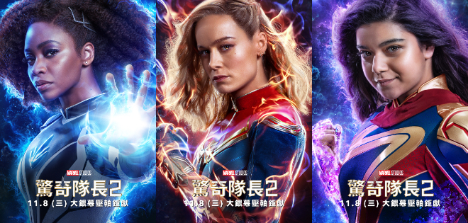 再等三週!漫威電影宇宙第五階段年度壓軸最新鉅作《驚奇隊長2》,將於 11 月 8 日搶先全美震撼大銀幕登場。官方今日公開最新角色海報,三位主角女星聯手一展三大驚奇女力的十足帥氣,加上神盾局當家龍頭尼克福瑞、朴敘俊飾演的外星王子,超萌外星橘貓呆頭鵝及貓咪大軍佛萊肯,吸睛指數破表!