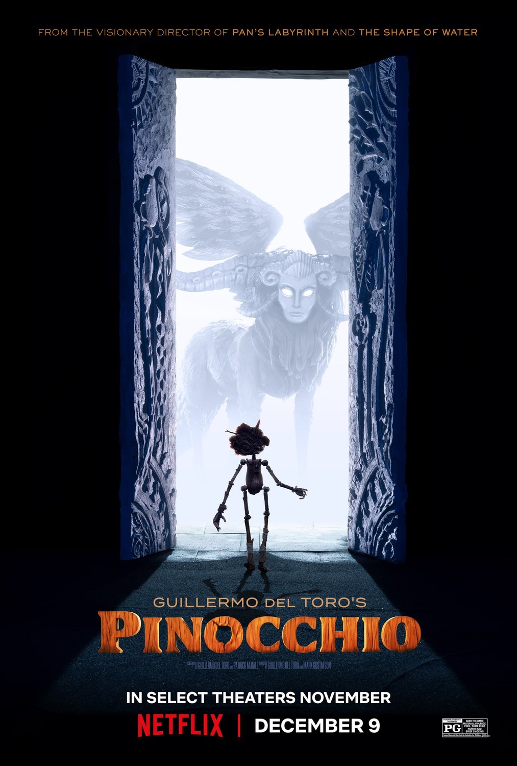 《吉勒摩戴托羅之皮諾丘》為定格動畫冒險音樂電影,重新演繹義大利經典故事《皮諾丘》,描述渴望變成人類男孩的皮諾丘,為了實現心願,展開了一場歡樂淘氣的冒險之旅。